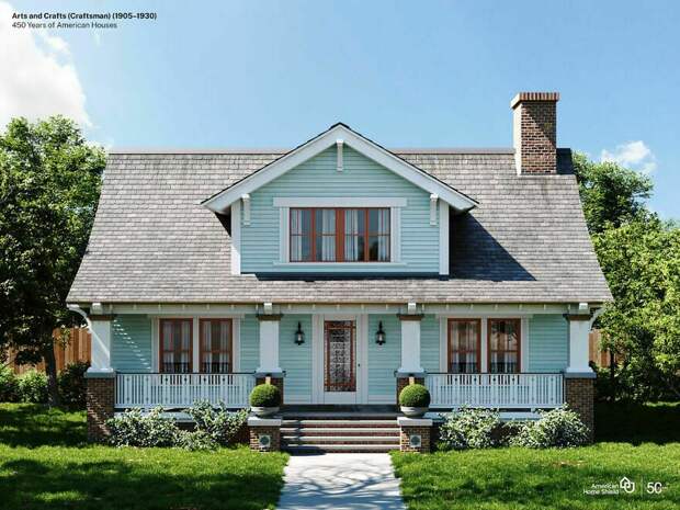 В 1905-1930 годах материалы стали более доступными, поэтому появились дома с простым декором и интерьером. Также это был вызов слишком роскошной предыдущей моде в стиле королевы Анны.